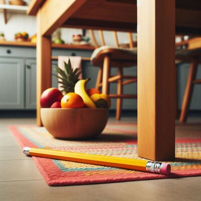 Friend 1: "I can't find my pencil." Friend 2: "T□□□□ it □□ ! Under the table." Friend 1: "내 연필을 못 찾겠어." Friend 2: "저기 있어! 탁자 아래에." (7) Key Sentence: There is