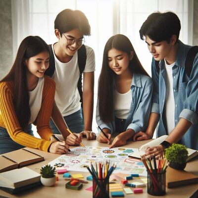 Teacher: " B□□□□ □□ into groups of four for the project." Students: "Okay, let's form a group." Teacher: "프로젝트를 위해 4명씩 그룹을 지어라." Students: "알겠어요, 그룹을 만들자." (9) Key Sentence: Break up