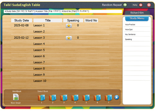 Talk-Suda는 학습에 필요한 단어와 문장을